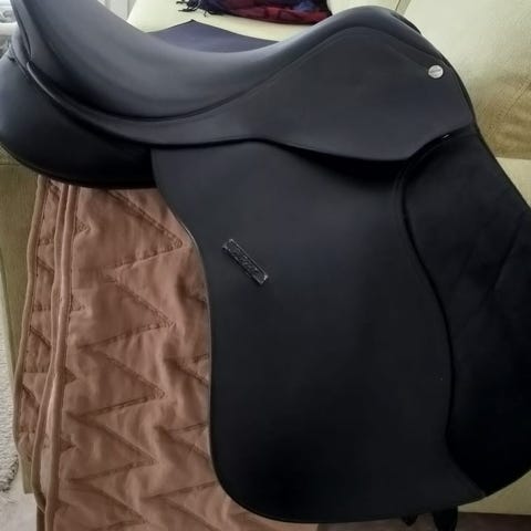 Nahkainen Wintecin satula, jossa sisällä musta kaari. Istuinosa hiukan kuluneen näköinen.