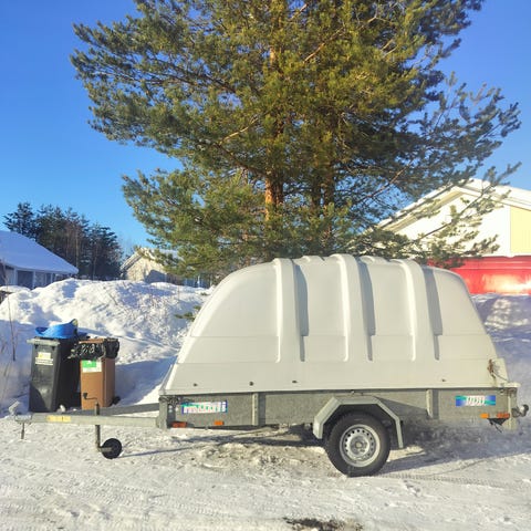 Muulissa 150cm korkea kuomu. Jarruton. Siisti ja uudehko.