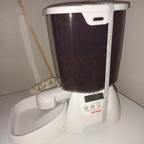 Catit PIXI Smart 6-meal ruoka-automaatti myynnissä lisäkylmäkalleilla. Käytetty vain muutaman kuukauden, joten kunto on kuin uusi ja toimii moitteettomasti. Helppokäyttöinen Catit-sovelluksen ja WIFI:n avulla. Mukana tulee laturi, mutta on myös paikka pattereille. Hinta ei neuvoteltavissa. Postitus onnistuu.