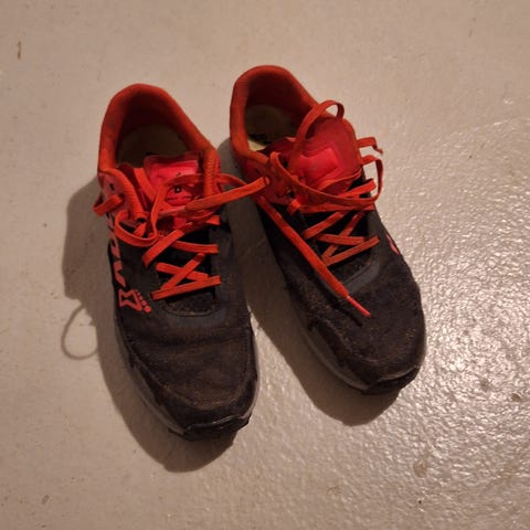 Kengät muuten hyvässä kunnossa, mutta oikean jalan kantapäässä verhoilu on kulunut puhki (kts. kuva)
