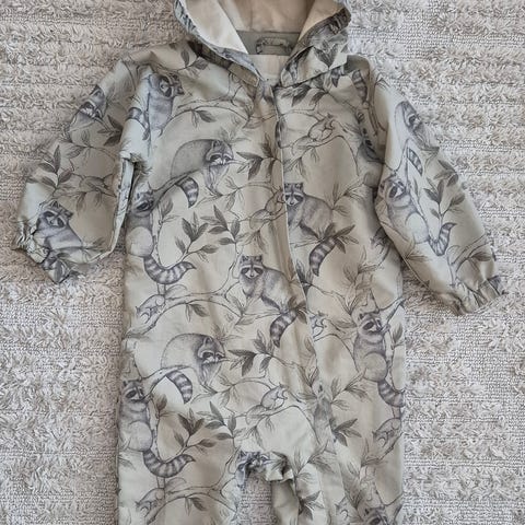Newbien kaunis välikausihaalari 80 cm. Ostettu jemmaan, mutta ei ehtinyt meillä käyttöön. Tosi hyvä kunto muuten, mutta jalkalenksuissa (etenkin toisessa enemmän) kulumaa. Ei kuitenkaan poikki.
