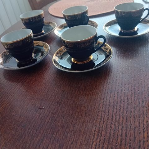 Kaunis käsinmaalattu Koivunlehdet -kahvikuppipari, joita 6 kpl