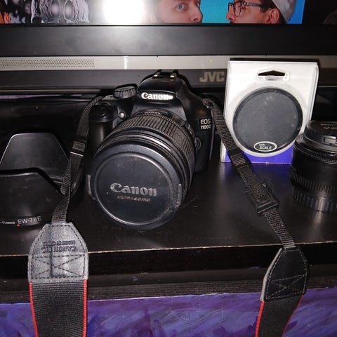 Myydään toimiva Canon EOS 1100D järjestelmäkamera settinä. Mukana perusobjektiivi, kolmijalka, kameralaukku, akku, laturi ja pieni 8gb sd kortti.