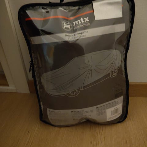 Viime vuonna ostettu ja liian isoksi todettu henkilöauton kokopeite SUV-malli. Peite hankittiin Nissan Qasqaihin mutta oli siihen liian iso ja jäi sitten palauttamatta.