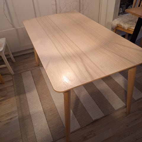 Hyväkuntoinen Iskun ruokapöytä, halkaisija 100cm. Pinnassa pientä sanomista, mutta ei haittaa, kun saat mukaan pellavaisen mustan pöytäliinan. Pöytä on tukeva ja painava.