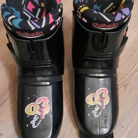 Dalbello Tecno Pro lasten laskettelumonot, valkoinen ja turkoosi väri, säädettävä kiinnityssolki. Sopivat lapsille lasketteluun.Koko 18.5-19.5 EU 29-31 sisämitta 18.5cm/ 222MM