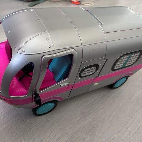 Tästä iso LOL Surprise -matkailuauto seuraavaan kotiin. Kaikki osat pitäisi olla mukana ja sähköosat toimivat.