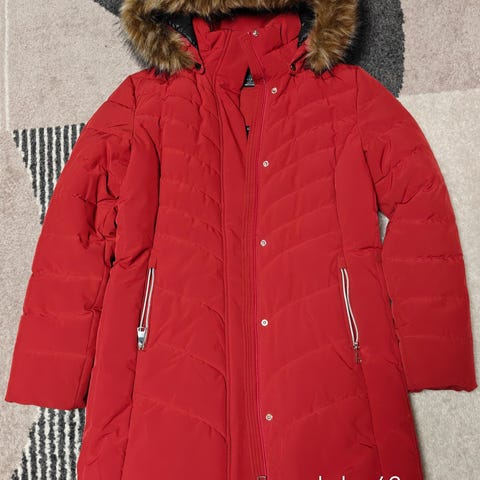 Luhta talvi takki hupulla, koko 42, irrotettava huppu ja hupussa irrotettava karvareuna, kaksi sisä taskua, edessä kaksi taskua ja yksi tasku hihassa, 99% polyesteri 1% viskoosi