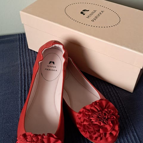 Minna Parikka juhlakengät koossa 37. Kengät ovat mustaa väriä ja niissä on koristeellinen kiilto. Sopivat juhlakäyttöön. Käytetty 4kertaa, ei mitään moitetta kunnossa. Maksanu ~400€ korot ei kulunu