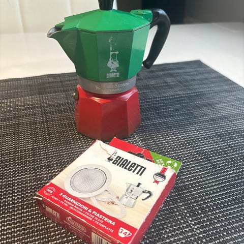 Kuuden kupin erittäin hyväkuntoinen italialainen mutteripannu. Ei sovellu induktioliedelle.