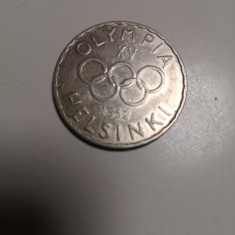 Hopeinen Helsingin Olympialaisten 500 markan juhlaraha 1952.