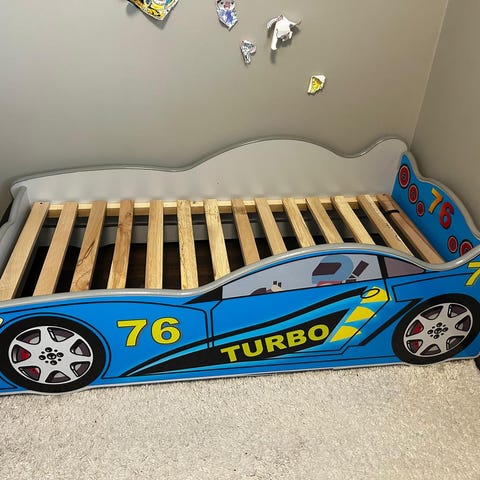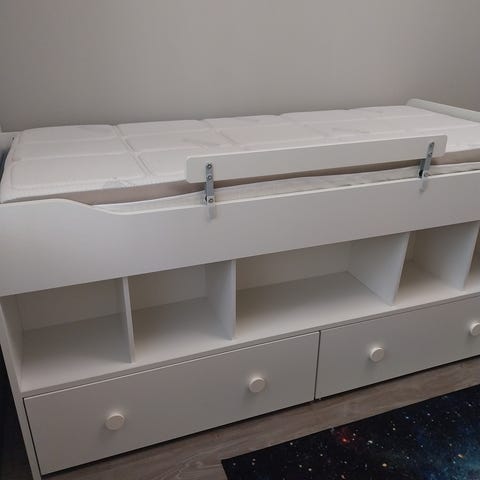 Sängystä puuttuu päädystä yksi kumisuoja.