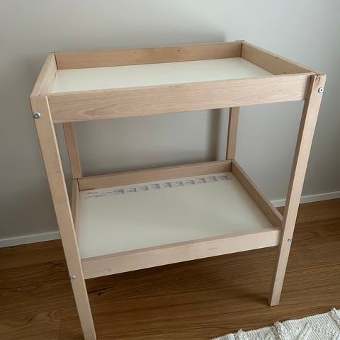 Ikean Sniglar hoitopöytä joka maalattu Tikkurilan Linna sävyllä, myrkytön maali. Koko L53 S72 K87