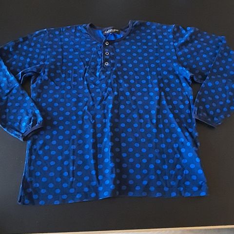 Nappilistalla oleva sininen pallopaita. Niukkaa kokoa, sopii paremmin s kokoiselle. Jonkin verran pesuhaalistumaa, mutta yleisilme siisti. Reikiä en löytänyt.