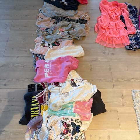 Merkkeinä mm Lindex, H&M, KappAhl, Benetton. Ehjiä ja siistejä, muutamasta vaatteesta löytyy pikkutahra joita ei ole yritetty poistaa. Nouto tai ToriDiili
