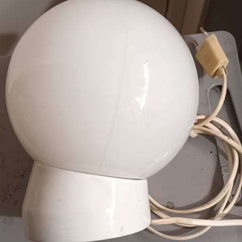Siisti ulko/vintin/kellarin maitolasinen pallolamppu posliinijalalla.kuvun halk.135mm.
