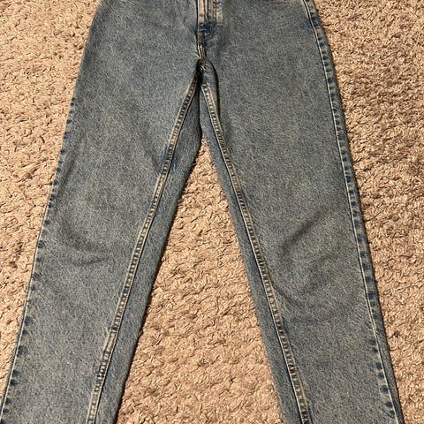 Sininen Denim-farkut naisille, koko S, vyötärön koko 27. Farkut on valmistettu denim-materiaalista ja sopivat naisille.