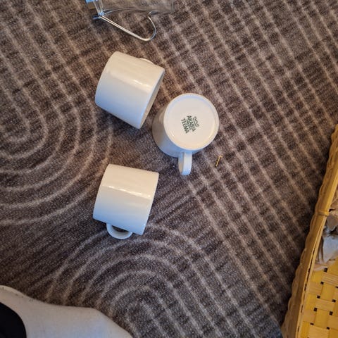 Teeman valkoiset kahvikupit, pari kertaa käytetty eli uudenveroiset. Huom 6kpl jäljellä. Lähtee yhteishintaan 50€ tai 10€/kpl.