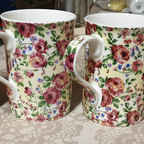 6kpl kahvikuppeja,yhdessä ruusu myös sisäpuolella,pikkulautasia 5kpl,halkaisija13.5cm,Isommat lautaset7kpl,halkaisija17cm