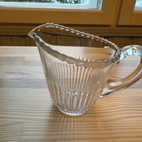 Kuvan mukainen lasinen kermanekka. Hinta. 2 euroa Ei toridiiliä