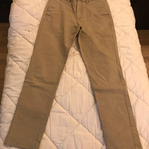 Khakinväriset chinot, malli slim. Kokomerkintä 30 leveys / 34 pituus. Hyvässä kunnossa.