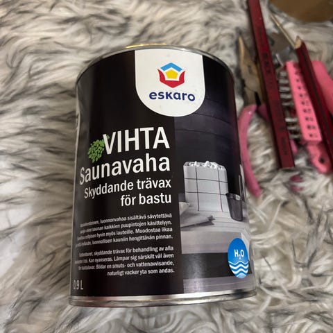 Myyn loput eilen (24.1.) ostetusta, tänään lauteiden käsittelyn jälkeen jäljelle jääneestä vaalean harmaaksi sävytetystä.(sävy: 205A Pakkanen) Tikkurilan saunavahasta. Litran purkista jäljellä vajaa puoli purkkia (riittoisuus: 10 - 13 m²/l, puulaadusta riippuen). Mukaan saa kaksi vaahtomuovisivellintä. Hinta 10 e.