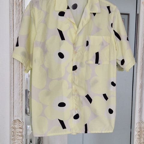 Marimekon valkea unikko paita. Väljä istuvuus ja suora leikkaus. Koko S. Vastaa mielestäni kokoaan. Jäänyt hyvin vähälle käytölle, joten hyvässä kunnossa. Nouto Lutakosta tai Toridiili.