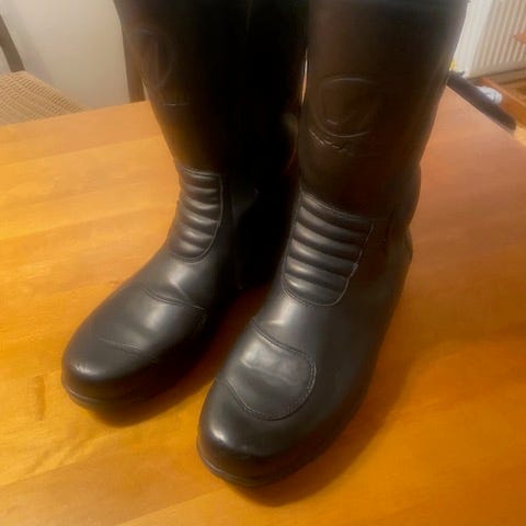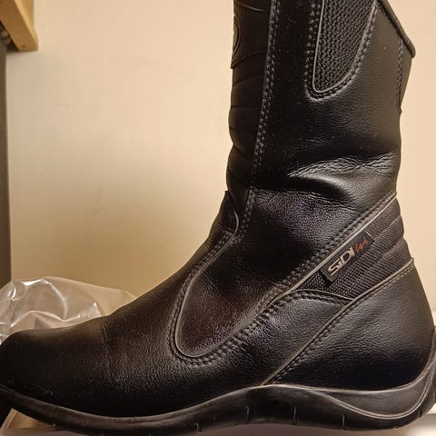 Koko 45. Vähän käytetyt Stylmartin moottoripyöräsaappaat ruskeaa nahkaa. Saappaissa on korkea varsi ja säädettävät remmit nilkan ja varren kohdalla. Pohja on kumia, joka tarjoaa pitoa. Saappaat soveltuvat moottoripyöräilyyn ja tarjoavat suojaa ja mukavuutta ajon aikana. Waterproof.