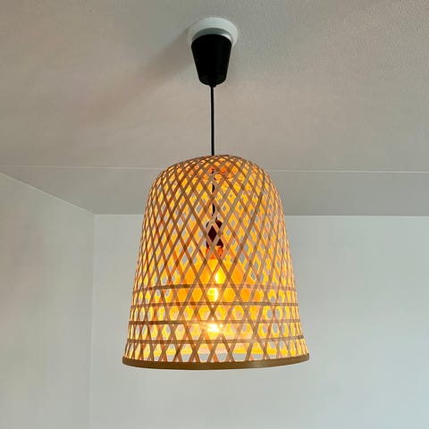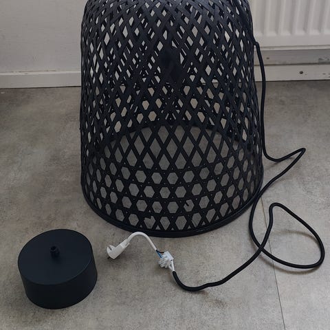 Myydään rottinkinen musta kattovalaisin ilman polttimoa.