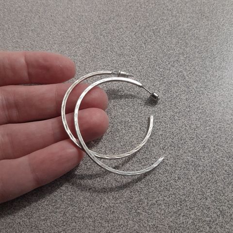 Hopeiset korvarenkaat, halkaisija 3 cm. Ostettu Kultajousesta viime kesänä. Käytetty muutaman kerran. Uudenveroiset.
