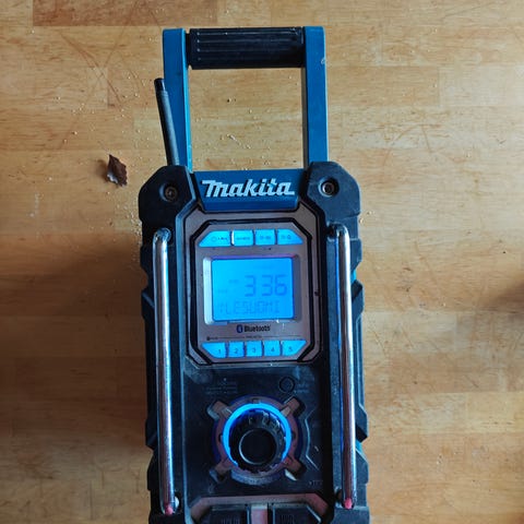 For sale is a new Makita DMR107 radio. Aux connection, radio, alarm clock. Power supply included. No Bluetooth, works via phone's Aux cable. Pick-up possible.