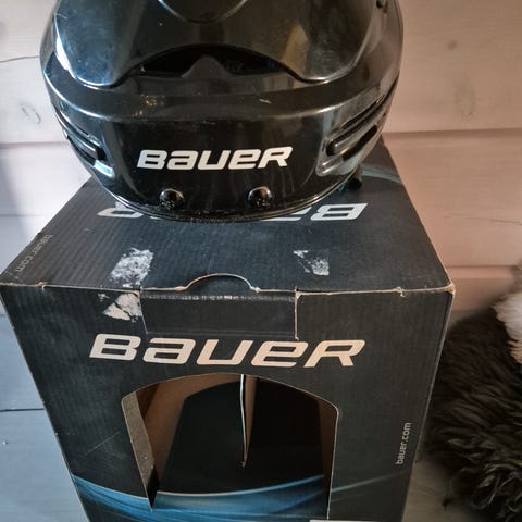 Bauer jääkiekkokypärä mustana, koko 7 (55-56 cm). Kypärä on varustettu metallisella kasvolla ja säädettävällä hihnalla. Soveltuu jääkiekkokäyttöön.