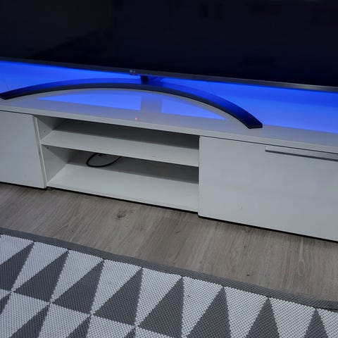 Tv-taso. Pituus 146cm, syvyys 40cm ja korkeus 41cm. Pientä käytönjälkeäkin löytyy. Ei varauksia.