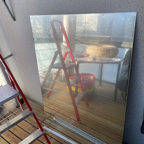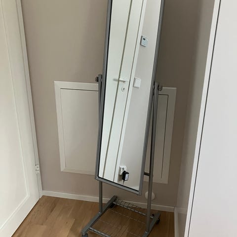 Liikuteltava peili. Kaikin puolin hyvässä kunnossa. Saa purettua myös helposti pois pyöriltä.