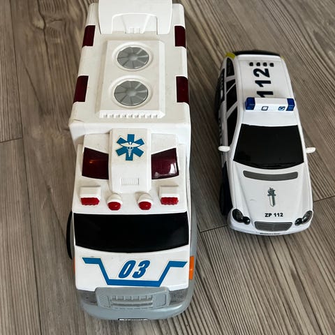 Myydään Bruder ambulanssi, jossa valot ja erilaisia hälytysääniä. Mukana kuljettaja, jolta puuttuu lippis. Valmistettu 2020.