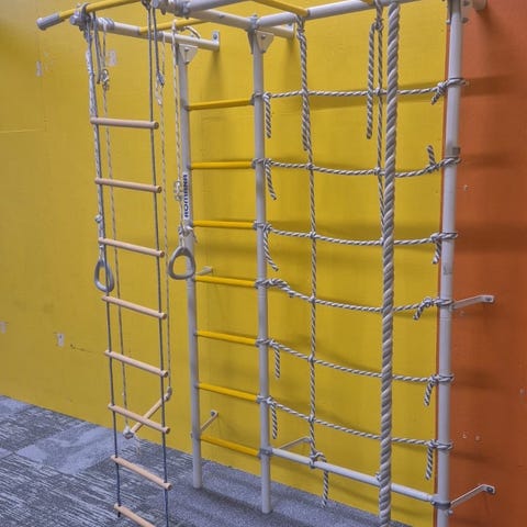 sisätiloissa käytettävä teline taaperoille, kiipeilyleikkisetti .köysitikkaalla ja voimistelurenkailla, tukee 70kg.