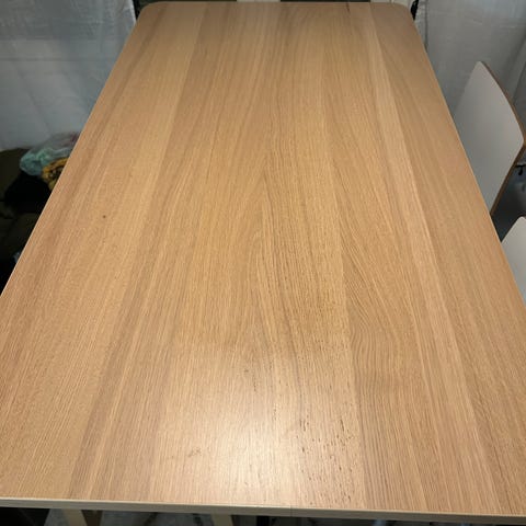 Tukeva ja hyvässä kunnossa! Reunaan ollut kiinnitetty teippi, joka ei täysin kerralla irronnut. Täytyy siis rapsutella pois. Jalat saa irrotettua kuljetukseen.