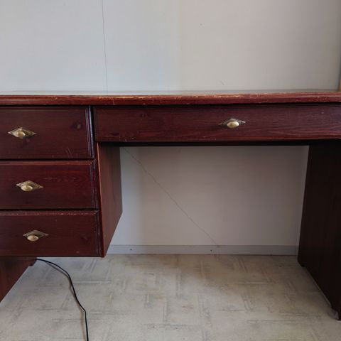 Myydään tyylikäs ja persoonallinen työpöytä. Tämä malli on tavallisia laatikkopöytiä harvinaisempi, sillä siinä on sivuilla ovet, jotka kätkevät taakseen runsaasti säilytystilaa ja antavat pöydälle selkeän, kalustemaisen ilmeen.