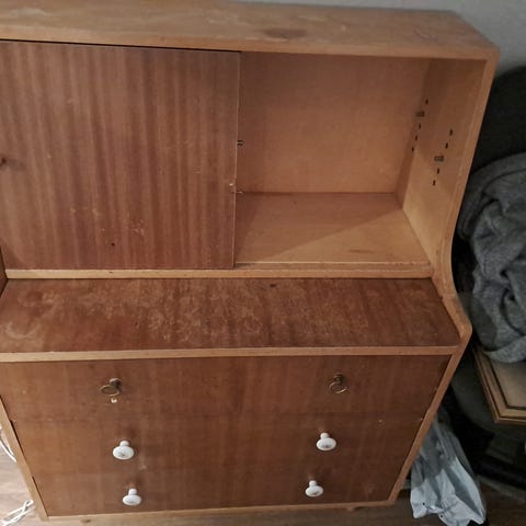 Kunto on ikäisekseen hyvä. Pinnassa on ajan tuomaa patinaa ja käytön jälkiä, jotka kuuluvat tämän ikäiseen kalusteeseen.