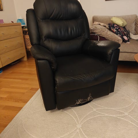 Sähkökäyttöinen musta nojatuoli, menee lähes vaaka-asentoon, testattu 110 kg:lle, kotikäyttöön, ostettu 10/2025 JYSK, (norm. 329 €) Ohjeet mukana, virtalähteen syöttöteho: AC 100-240 V. Luovutaan tilan puutteen ja käyttämättömyyden vuoksi.
