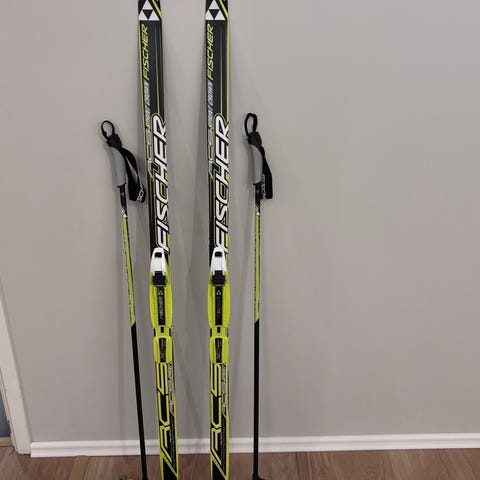 Fischer lasten hiihtosukset, pituus 130 cm, musta-keltainen väri, perinteisen tyylin sukset. Mukana sauvat ja kahdet erikokoiset monot: mustat kokoa 32, vaaleanpunaiset/harmaat kokoa 35.