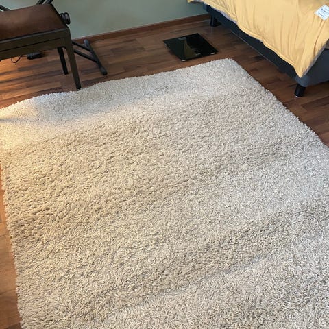 Valkoinen matto. Pituus 190cm leveys 65cm