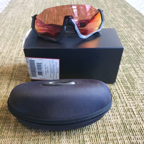 Oakleyn hyväkuntoiset urheilulasit. Linssissä yksi naarmu mutta ei näy näkökentässä. PRIZM linssi. Mukaan myös alkuperäinen säilytyskotelo.
