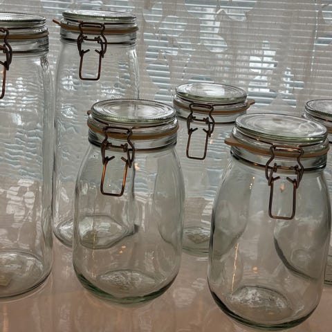 IKEA lasipurkit, joissa on bambukannet. Purkit soveltuvat esimerkiksi keittiön säilytykseen.