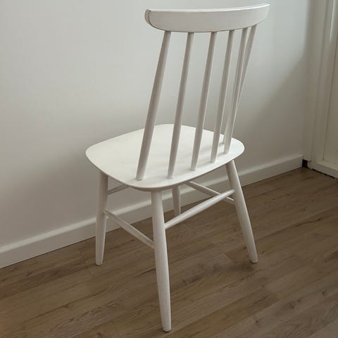 Myydään 4 kpl kokopuisia valkoisia pinnatuoleja.