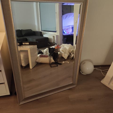 Myydään kaksi hopeisella kehyksillä olevaa kuvan mukaista peiliä.