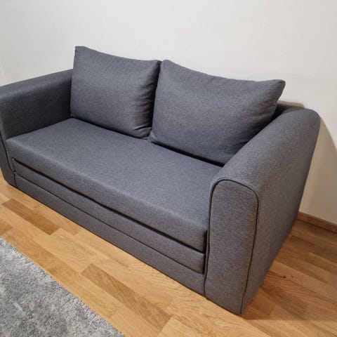 Kätevä pieni sohva, josta saa yhden hengen vuoteen. Voidaan myös pitää divaanimallisena, jolloin mahtuu kolme istujaa (katso kuva Ikean sivuilta). Alla säilytystilaa. Väri vihreä.