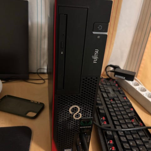 Fujitsu pöytätietokone. Mukana myös värillinen valaistu näppäimistö, kuulokemikrofoni ja langaton hiiri. Iha hyvä kone ollut itelle mutta ei tuu enään käyttöö.