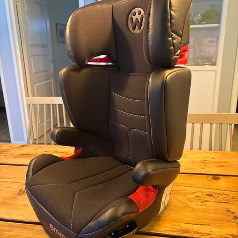 Emma-merkkinen turvaistuin, isofix-kiinnitys, säädettävä selkänojan korkeus. Painoluokkaan 15-36 kg.