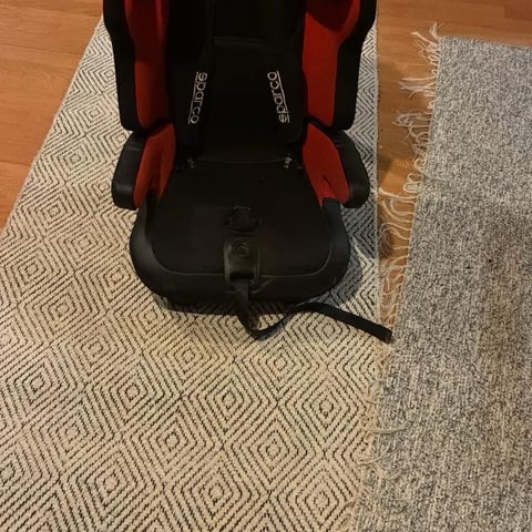Sparco turvaistuin, koko 36. Turvaistuin on tarkoitettu lapsille ja sen materiaali on pehmeä kangas. Istuin on suunniteltu tarjoamaan turvallisen istumapaikan autossa. Kiinnitys auton omilla turvavöillä. Istuimessa 5 pistevyöt ja säädettävä pään tuki.